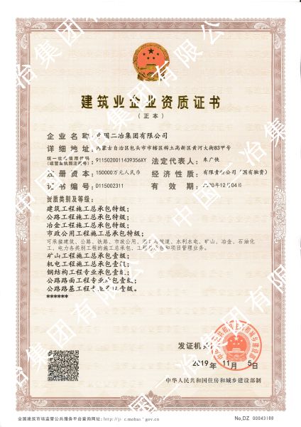 當(dāng)前位置: 首頁 > 集團概況 > 企業(yè)資質(zhì)