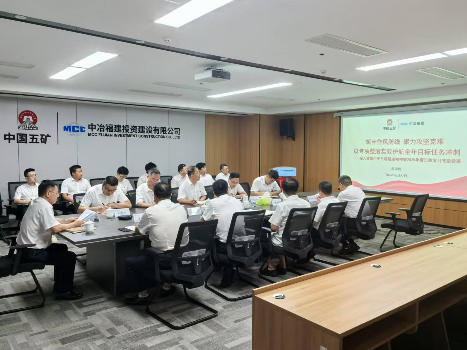 6月27日,中冶福建公司召開專題會(huì)議,認(rèn)真學(xué)習(xí)習(xí)近平總書記關(guān)于加強(qiáng)黨的作風(fēng)建設(shè)重要論述,通報(bào)剖析典型案例,部署違規(guī)吃喝專項(xiàng)整治工作,動(dòng)員全體干部職工以優(yōu)良作風(fēng)全力沖刺年度目標(biāo)任務(wù)。公司黨委委員、副總經(jīng)理,中冶福建公司黨委書記、董事長(zhǎng)、總經(jīng)理周學(xué)民出席會(huì)議并講授專題黨課。