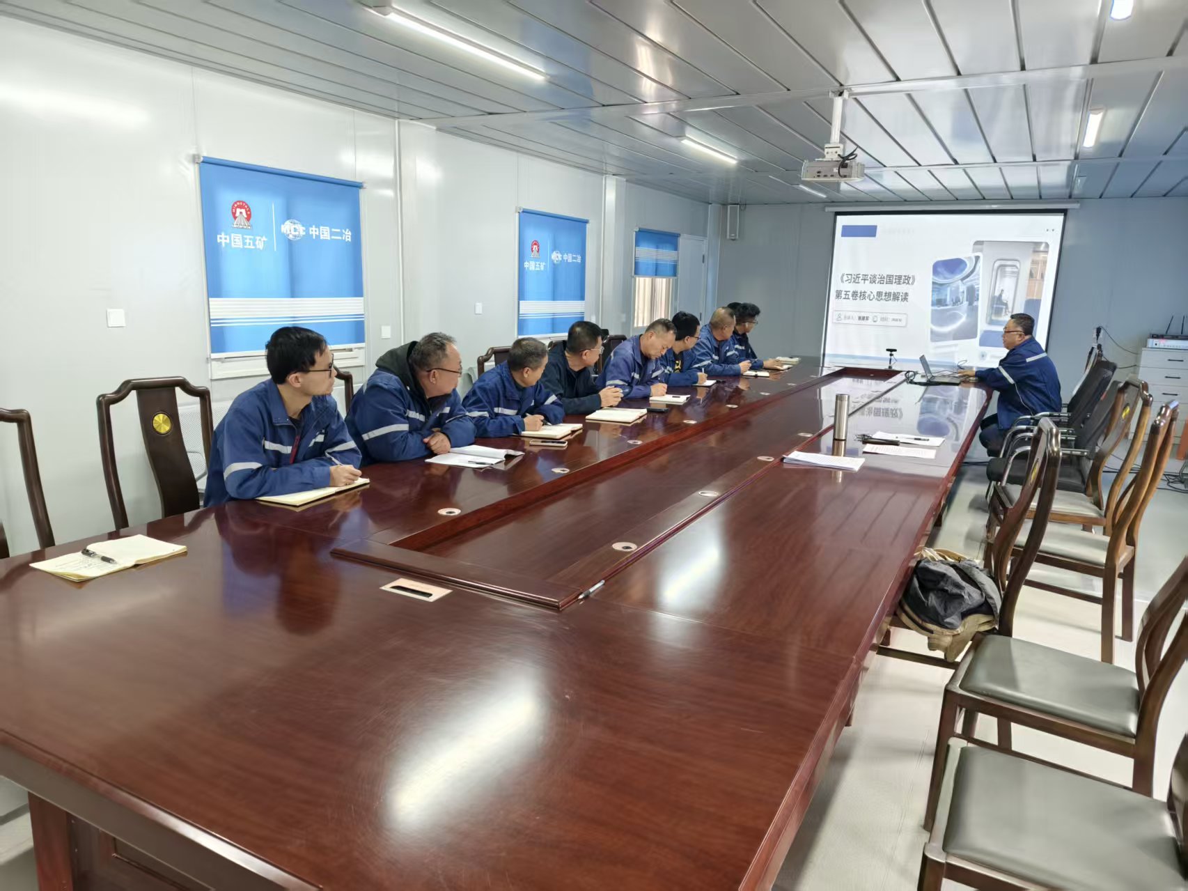 10月25日,鋼構(gòu)分公司黨委書(shū)記張建軍赴聯(lián)系點(diǎn)山西長(zhǎng)治項(xiàng)目講黨課,帶領(lǐng)山西項(xiàng)目部黨支部集體學(xué)習(xí)《習(xí)近平談治國(guó)理政》第五卷核心思想解讀。