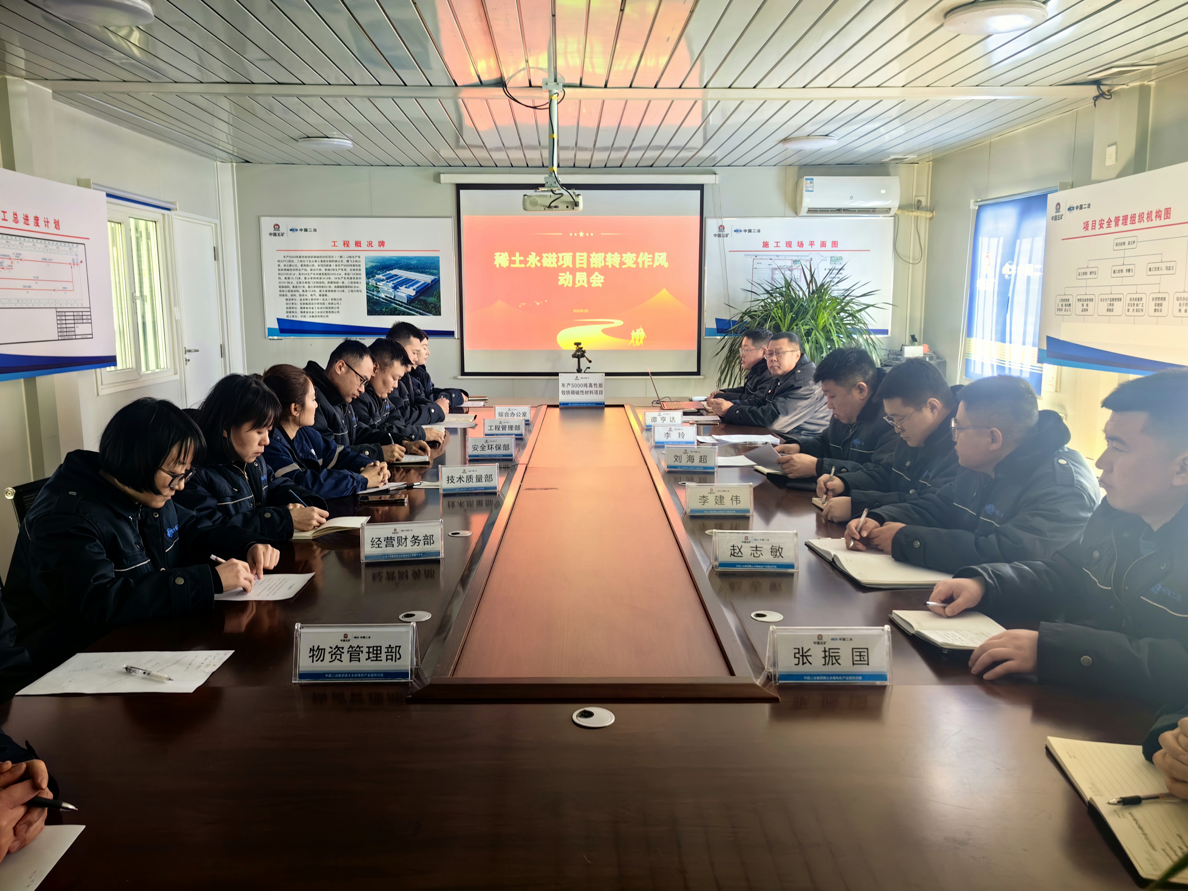 3月17日,城建分公司稀土永磁項(xiàng)目部召開(kāi)轉(zhuǎn)變作風(fēng)動(dòng)員會(huì),強(qiáng)力推出“六個(gè)堅(jiān)持”加強(qiáng)作風(fēng)建設(shè),細(xì)化崗位職責(zé),舉一反三查找不足,提升工作質(zhì)量,樹(shù)新風(fēng)、立正氣,鼓足干勁實(shí)現(xiàn)全年目標(biāo)。
