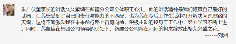 新疆分公司獻(xiàn)給朱廣俠董事長(zhǎng)的“悄悄話”