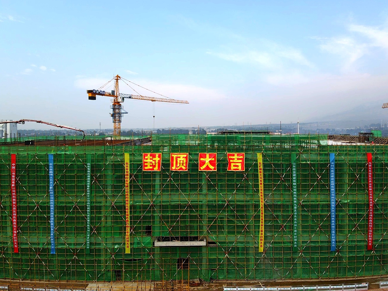 該項(xiàng)目位于包頭市九原區(qū)烏蘭計(jì)5村,阿嘎如泰鎮(zhèn)鎮(zhèn)政府東側(cè),繁榮道南側(cè),區(qū)間三路西側(cè)。項(xiàng)目規(guī)劃建設(shè)1#廠房+綜合樓,其中1#食品加工廠房17840平方米,建筑高度21.6米,結(jié)構(gòu)類型為框架結(jié)構(gòu),共3層,層高為6.6米;綜合樓為3369.70平方米,建筑高度17.8米,框架結(jié)構(gòu),共4層,首層高為4.2米,2至4層高3.9米。自開工建設(shè)以來(lái),項(xiàng)目部始終秉持“安全第一、質(zhì)量為本”的理念,科學(xué)組織施工,精心調(diào)配資源,憑借豐富經(jīng)驗(yàn)攻克施工場(chǎng)地受限、結(jié)構(gòu)層高較高等難題,高效推進(jìn)項(xiàng)目建設(shè),用108天讓藍(lán)圖上的線條真真切切立成了實(shí)體。?