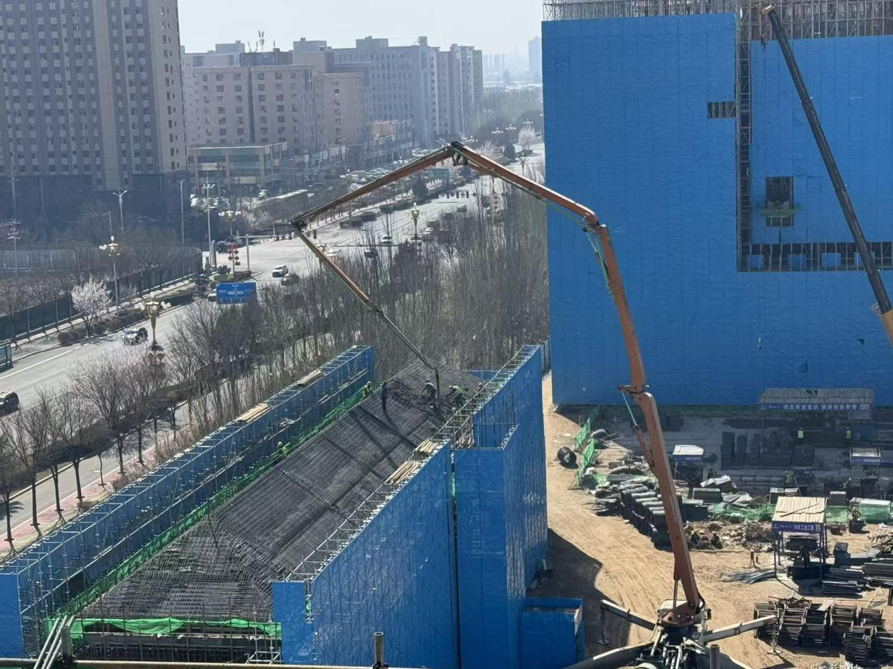 在質(zhì)量管控上,項(xiàng)目團(tuán)隊(duì)精益求精,嚴(yán)格控制鋼筋間距、保護(hù)層厚度等關(guān)鍵參數(shù),采用雙層雙向配筋體系強(qiáng)化結(jié)構(gòu)受力。針對(duì)大坡度混凝土澆筑難題,選用低坍落度混凝土,優(yōu)化“先低后高、分層推進(jìn)”的澆筑順序,有效解決了混凝土下滑問題,保障了結(jié)構(gòu)成型質(zhì)量。安全是施工的底線。項(xiàng)目部全面落實(shí)高處作業(yè)安全管控要求,完善腳手架、安全網(wǎng)等防護(hù)設(shè)施,安排專人全程旁站監(jiān)督,實(shí)現(xiàn)澆筑過程“零事故”。同時(shí),統(tǒng)籌協(xié)調(diào)混凝土供應(yīng)、現(xiàn)場(chǎng)施工與設(shè)備保障,各環(huán)節(jié)緊密銜接,連續(xù)高效澆筑,圓滿完成節(jié)點(diǎn)目標(biāo)。
