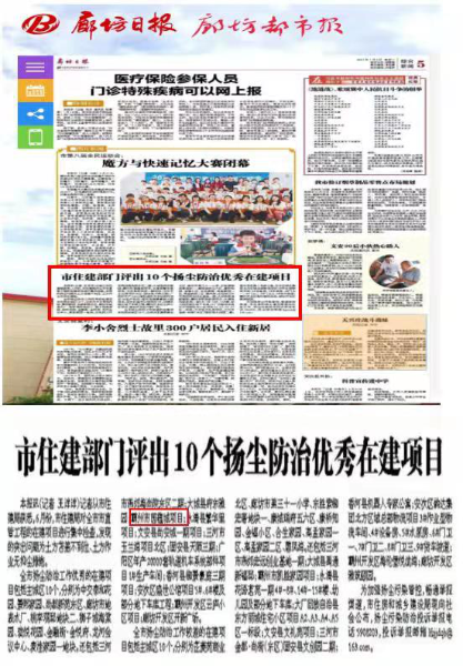 本次評(píng)比活動(dòng)旨在進(jìn)一步加強(qiáng)揚(yáng)塵污染管控,打贏污染防治攻堅(jiān)戰(zhàn),守護(hù)燕趙大地天藍(lán)水清的生態(tài)環(huán)境,不斷提升當(dāng)?shù)厝罕姷男腋8小踩卸_(kāi)展的一次重要活動(dòng)。廊坊市住建局高度重視,于6月份對(duì)全市市直管工程的在建項(xiàng)目進(jìn)行集中檢查,打分排名評(píng)比,最終評(píng)出10個(gè)全市揚(yáng)塵防治工作優(yōu)秀在建項(xiàng)目。其中,中國(guó)二冶城建分公司河北霸州市國(guó)蘊(yùn)城項(xiàng)目憑借規(guī)范化、標(biāo)準(zhǔn)化的現(xiàn)場(chǎng)安全文明施工和揚(yáng)塵治理措施到位、現(xiàn)場(chǎng)土方綠網(wǎng)全覆蓋等一系列先進(jìn)的管理方法,受到廊坊市住建局的好評(píng),獲得此項(xiàng)殊榮。