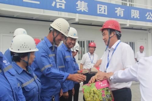 高文華首先對工作在一線員工們的辛勤工作表示感謝和崇高的敬意,聽取了項目負責(zé)人的工作匯報,并與大家親切交談,詳細了解員工們的工作生活情況,鼓勵所有員工,增強集體榮譽感和責(zé)任心,用奮斗譜寫二冶建設(shè)新篇章,并為他們發(fā)放了月餅、水果等節(jié)日禮物,勉勵他們要不忘初心、牢記使命、勇?lián)厝?。高文華指出,在中秋和國慶“兩節(jié)”來臨之際,公司許多員工依然堅守工作崗位勤懇奉獻,正是“一天也不耽誤,一天也不懈怠”的企業(yè)精神,中國二冶才跑出了發(fā)展的“加速度”,公司對廣大員工及其家屬的辛勤付出與大力支持表示衷心感謝。