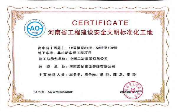 近日,由中國(guó)二冶承建的尚中苑(西苑)工程項(xiàng)目榮獲河南省工程建設(shè)協(xié)會(huì)“河南省工程建設(shè)安全文明標(biāo)準(zhǔn)化工地”榮譽(yù)稱號(hào)。
