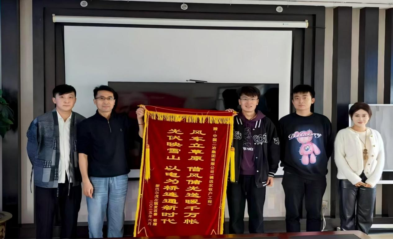 錦旗上題寫“風車立草原,借風儲光送暖千萬帳;光伏映雪山,以電為橋連通新時代”,生動詮釋了項目的核心價值與深遠意義。新巴爾虎左旗政府表示,該項目地處內蒙古偏遠牧區(qū),氣候條件惡劣、交通出行不便,整體施工環(huán)境極為艱苦。面對挑戰(zhàn),項目管理團隊充分發(fā)揮技術與管理優(yōu)勢,始終以“高標準、高質量、高效率”為施工準則,全力克服物資運輸困難、極端天氣影響等多重難題,最終如期完成節(jié)點任務。該項目的順利推進,不僅成功解決了當?shù)剞r(nóng)牧民的急難愁盼問題,直接惠及數(shù)百戶農(nóng)牧民家庭,顯著提升了牧區(qū)群眾的生活品質;更通過產(chǎn)業(yè)配套升級,為當?shù)亟?jīng)濟可持續(xù)發(fā)展注入了新動能,為邊疆牧區(qū)發(fā)展奠定了堅實基礎。