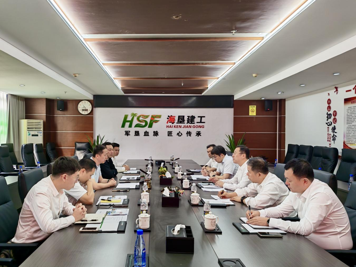 海南農(nóng)墾實(shí)業(yè)集團(tuán)有限公司副總經(jīng)理李榮濱,戰(zhàn)略企劃部負(fù)責(zé)人毛鳳鳴,成本合約部負(fù)責(zé)人陳景秋,設(shè)計(jì)研發(fā)部部長(zhǎng)石鑫;中國(guó)二冶李曦鵬、郝海飛等陪同會(huì)見(jiàn)。