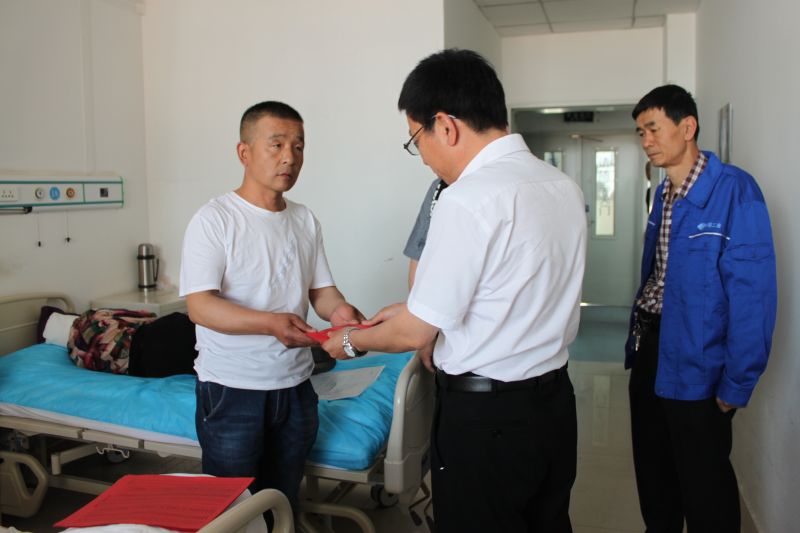 6月1日,路橋分公司黨委副書記與該公司設(shè)備物資租賃站黨政領(lǐng)導(dǎo)及相關(guān)部門負(fù)責(zé)人,將9730元愛心捐款送到設(shè)備物資租賃站困難職工董昌權(quán)手中。