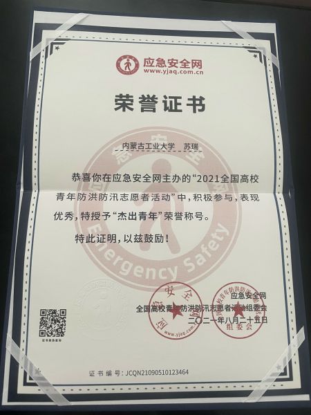 9月25日,一本記錄著路橋分公司青年員工蘇瑞愛(ài)心捐贈(zèng)的榮譽(yù)證書(shū)郵寄到大運(yùn)河項(xiàng)目部。蘇瑞向河南災(zāi)區(qū)奉獻(xiàn)愛(ài)心、捐款捐物的行動(dòng)得到了“應(yīng)急安全網(wǎng)”的褒揚(yáng),他也在“2021全國(guó)高校青年防洪防汛志愿者活動(dòng)”中被評(píng)為“杰出青年”榮譽(yù)稱(chēng)號(hào)。