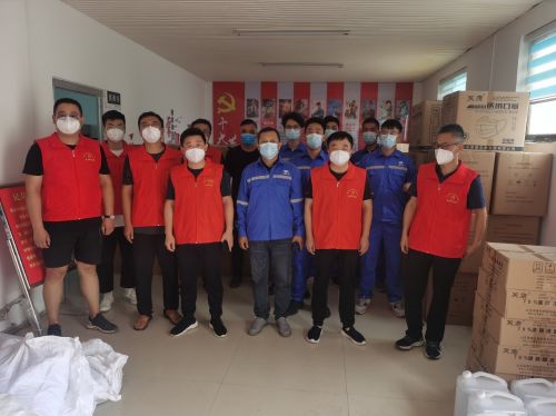 自曹縣本土疫情發(fā)生后,項目部迅速組織投入疫情防控工作,主動聯(lián)系邵莊鎮(zhèn)人民政府,了解到疫區(qū)的實際情況后,根據(jù)疫區(qū)所缺物資,立即進行防疫物資采購并送往疫區(qū)。一輛輛滿載防疫物資的車輛紛至沓來,一位位管理人員揮汗如雨,搬運、卸貨,很快防疫物資堆成了小山,其中捐贈口罩20000只、消毒液100公斤、方便面100箱、礦泉水4箱。
