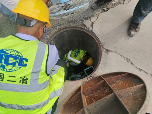 發(fā)現(xiàn)此問題后,項(xiàng)目經(jīng)理盧晨帶領(lǐng)項(xiàng)目部管理人員立即到現(xiàn)場(chǎng)察看情況,并且及時(shí)上報(bào)建設(shè)單位,同時(shí)聯(lián)系溝通市政管養(yǎng)人員,并與施工隊(duì)實(shí)地查看堵塞原因。因附近村莊建設(shè)時(shí)間較早,雨水管、雨水井年久失修,降雨時(shí)部分淤泥、砂石和雜草樹葉隨水流沖入管道等,種種原因?qū)е掠晁馈⒂晁s物淤積,排水能力下降。查明原因后,許昌項(xiàng)目部立即研究解決方案,明確施工流程,調(diào)集專業(yè)疏通人員啟動(dòng)設(shè)備車輛,隨即開始維修,經(jīng)過一周左右的清污疏通、清淤,堵塞雨水管線全部恢復(fù)暢通,共計(jì)清理雨水井24個(gè),雨水管11個(gè)(長(zhǎng)約2000米),徹底解決了村民一大難題。