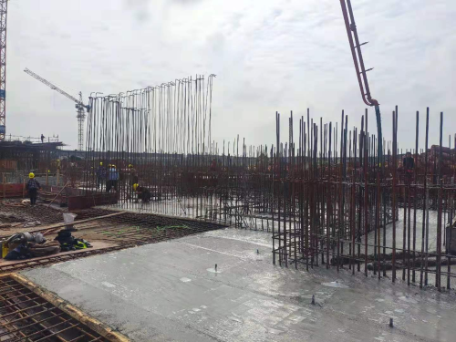 近幾天連續(xù)降雨為項(xiàng)目施工帶來了一系列困難,但在恒大譽(yù)景花園施工現(xiàn)場還是一片熱火朝天的大干景象,項(xiàng)目管理人員及施工作業(yè)人員緊張有序的忙碌在施工現(xiàn)場。本次澆筑采用1臺泵車,20余臺罐車循環(huán)同時作業(yè),現(xiàn)場管理人員全天盯控,在歷經(jīng)48小時緊張有序的施工后,累計(jì)澆筑混凝土1620方。筏板作為基礎(chǔ)施工的重要組成部分,直接影響到上部結(jié)構(gòu)穩(wěn)定。為確保9#筏板基礎(chǔ)順利澆筑,株洲恒大項(xiàng)目部實(shí)行兩班倒制度,通過24小不間斷施工,搶時間、抓工序、重安全、保質(zhì)量,各項(xiàng)工作按計(jì)劃有序開展,確保了完美履約的開端。