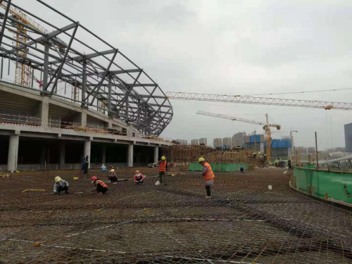 目前,項(xiàng)目配套用房B、C區(qū)已經(jīng)全部封頂,B區(qū)二次結(jié)構(gòu)完成90%,C區(qū)二次結(jié)構(gòu)完成70%。配套用房D1-4區(qū)主體完工,D5區(qū)屋面層鋼筋完成30%,D6區(qū)四層鋼筋綁扎完成70%,D7區(qū)屋面層支模架完成90%,D8區(qū)屋面層鋼筋完成5%,D9區(qū)屋面鋼筋完成10%,其中D1-6區(qū)二次結(jié)構(gòu)共完成70%,抹灰工程共完成10%。全民健身館J1-J6區(qū)土建混凝土量?jī)H剩余150立方即可全面交予鋼結(jié)構(gòu)工程,鋼結(jié)構(gòu)工程現(xiàn)已完成80%,全民健身館二次結(jié)構(gòu)完成70%。