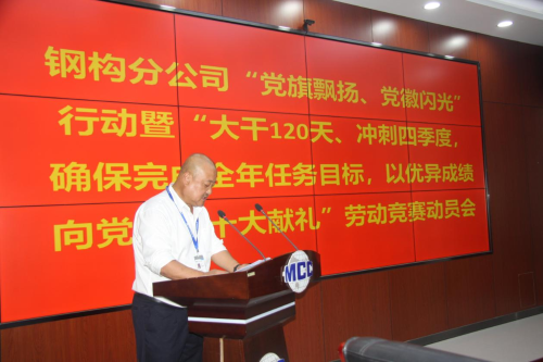 9月15日,鋼構(gòu)分公司黨委召開“黨旗飄揚(yáng)、黨徽閃光”行動(dòng)暨“大干120天、沖刺四季度,確保完成全年任務(wù)目標(biāo)以優(yōu)異成績(jī)向黨的二十大獻(xiàn)禮”勞動(dòng)競(jìng)賽動(dòng)員會(huì)。鋼構(gòu)分公司黨委書記、總經(jīng)理王志義發(fā)表講話,分公司紀(jì)委書記、副總經(jīng)理田廣林主持會(huì)議。