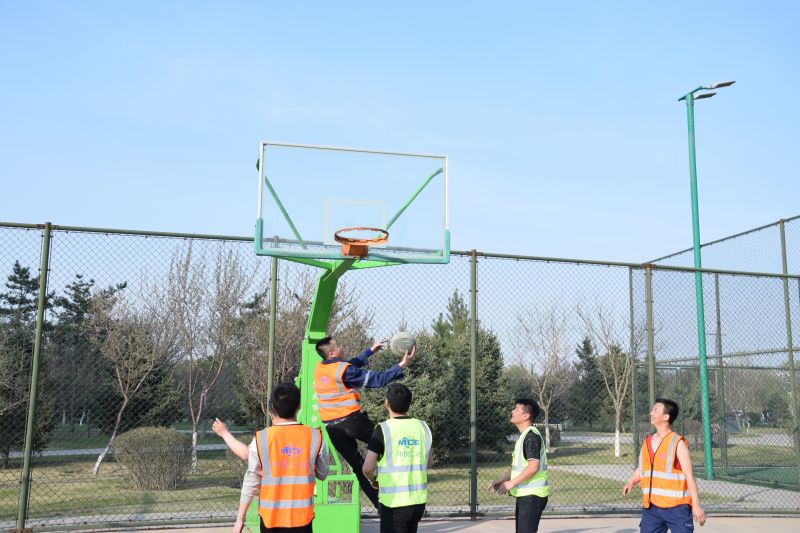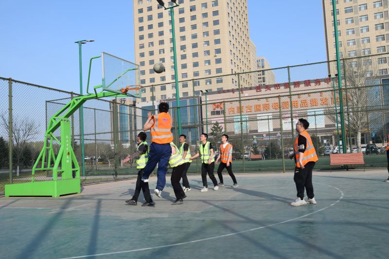 城建分公司商務(wù)大廈項(xiàng)目部現(xiàn)有團(tuán)員青年13名,占項(xiàng)目在崗職工總數(shù)的65%。其中黨員7名,占團(tuán)員青年總數(shù)的54%。項(xiàng)目部團(tuán)支部自2019年成立后,緊扣黨建帶團(tuán)建,黨有號(hào)召團(tuán)有行動(dòng)的號(hào)令,團(tuán)員青年、青年黨員沖鋒在施工一線,闖關(guān)奪隘,在商務(wù)大廈、都市庭苑項(xiàng)目疫情防控、奮戰(zhàn)120天勞動(dòng)競(jìng)賽中完成了多項(xiàng)施工節(jié)點(diǎn),青年黨員、團(tuán)員青年在施工中冒強(qiáng)風(fēng)頂暴雨,戰(zhàn)晴天斗嚴(yán)寒,晝夜奮戰(zhàn),團(tuán)員青年壓力大工作環(huán)境極其艱苦,為了緩解團(tuán)員的壓力,調(diào)動(dòng)黨員、團(tuán)員青年的積極性,項(xiàng)目部以“學(xué)黨史、悟思想、辦實(shí)事”為主線,由團(tuán)支部組織,展開(kāi)籃球?qū)κ仲悺;顒?dòng)伊始,團(tuán)支部書(shū)記詳細(xì)介紹了本次半場(chǎng)籃球比賽的規(guī)則,全程實(shí)行記分制,進(jìn)球一顆得一分,不進(jìn)球不得分,最先達(dá)到5分獲勝。4月22日下午5點(diǎn)30分,活動(dòng)首先通過(guò)轉(zhuǎn)球形式分為兩隊(duì),兩隊(duì)隊(duì)員摩拳擦掌,躍躍欲試,兩隊(duì)緊盯裁判哨聲和籃球,只聽(tīng)哨聲一響,籃球飛躍空中,兩隊(duì)隊(duì)員奮力拼殺搶球,拉開(kāi)了籃球?qū)κ仲?,本著友誼第一比賽第二的賽事原則,隊(duì)員們密切配合,一個(gè)眼神一個(gè)傳球動(dòng)作都是隊(duì)員默契傳球的暗號(hào),賽場(chǎng)上你爭(zhēng)我?jiàn)Z,隊(duì)員們身形敏捷,輾轉(zhuǎn)騰挪,經(jīng)過(guò)激烈比拼,比賽采用三局兩勝制,最終黃馬甲隊(duì)贏得2局獲勝。