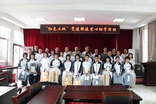 天長北路安置項目部聯(lián)合臺州黃巖中環(huán)房地產(chǎn)開發(fā)有限公司、黃巖區(qū)建筑工程質(zhì)量安全事務(wù)中心黨支部和黃巖區(qū)頭陀鎮(zhèn)中學黨支部,以黨建聯(lián)建為載體,以捐資助學、唱紅歌、講紅色故事為活動抓手,為頭陀鎮(zhèn)中學生活困難的學生送上書包、書本等物品,讓紅色文化在孩子們的心里落地生根,將紅色基因代代相傳。