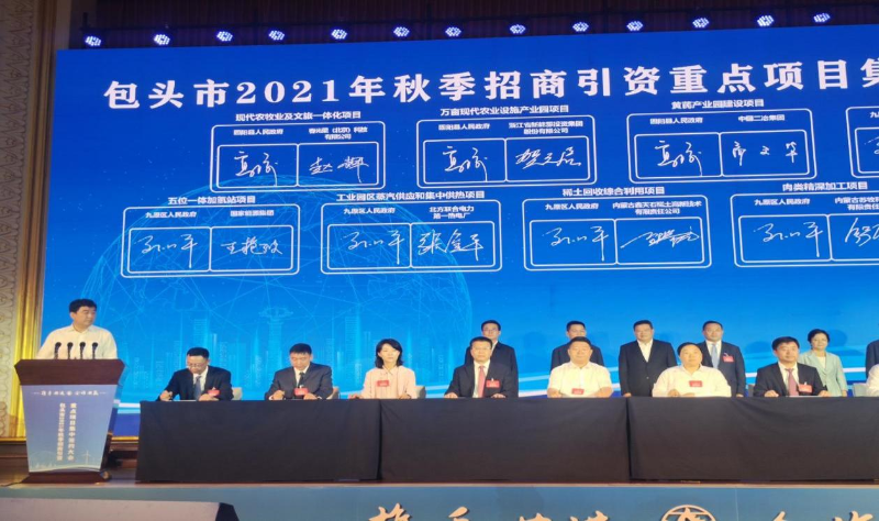 本次集中簽約項(xiàng)目共 45 個(gè),計(jì)劃總投資 1160 億元,涉及 14 個(gè)產(chǎn)業(yè)領(lǐng)域。簽約大會(huì)由中共包頭市委員會(huì)、包頭市人民政府主辦。本次大會(huì)簽約項(xiàng)目主要集中在綠色低碳領(lǐng)域。通過現(xiàn)場簽約與網(wǎng)絡(luò)簽約相結(jié)合的模式。其中,現(xiàn)場簽約項(xiàng)目共26個(gè)、網(wǎng)絡(luò)視頻簽約項(xiàng)目共19個(gè),共簽訂合作項(xiàng)目45個(gè),簽約項(xiàng)目中涉及世界500強(qiáng)企業(yè)6個(gè)、中國500強(qiáng)企業(yè)4個(gè)、中國民營500強(qiáng)企業(yè)2個(gè)。計(jì)劃總投資 1160億元,助力綠色低碳環(huán)保循環(huán)經(jīng)濟(jì)持續(xù)發(fā)展。
