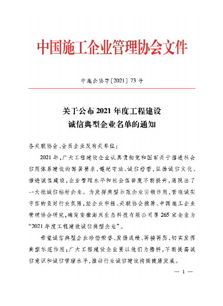10月28日,由中國施工企業(yè)管理協(xié)會主辦的2021年度中國工程建設(shè)企業(yè)信用評價結(jié)果及誠信企業(yè)評選揭曉,中國二冶通過AAA信用等級年審并被授予“2021年度中國工程建設(shè)誠信典型企業(yè)”。