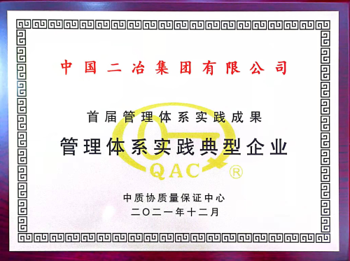 近日,中國(guó)二冶在中質(zhì)協(xié)質(zhì)量保證中心舉辦的首屆管理體系實(shí)踐成果評(píng)選活動(dòng)中,榮獲“管理體系實(shí)踐典型企業(yè)”榮譽(yù)稱號(hào)。